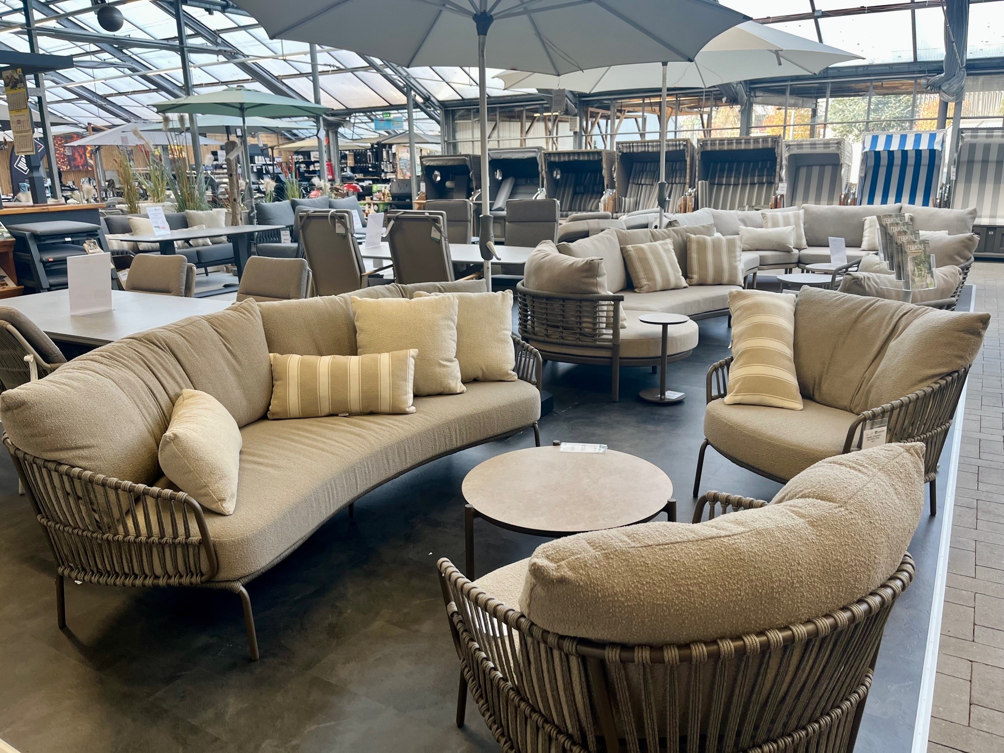 Übrigens: Fast alle Ausstellungsstücke sind sofort ab Lager verfügbar – Sie können sie einfach mitnehmen. Gerne liefern wir Ihnen Ihre fertig montierten neuen Gartenmöbel auch direkt zu Ihnen nach Hause.
